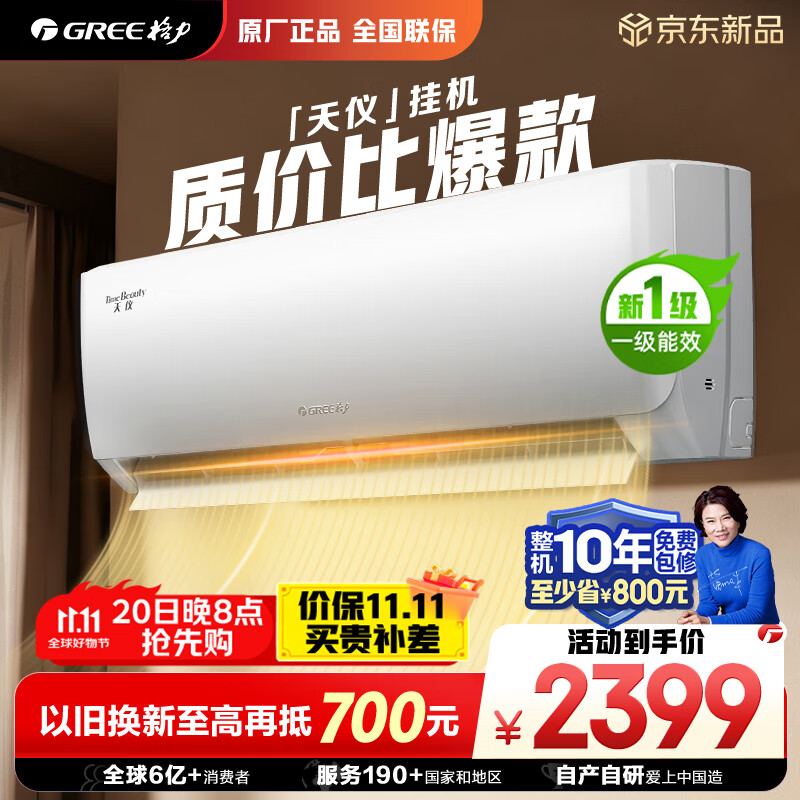 格力(GREE)1.5匹天仪 新1级能效变频 壁挂式卧室省电空调挂机KFR-35GW/(35504)FNhAa-B1 家电国家补贴