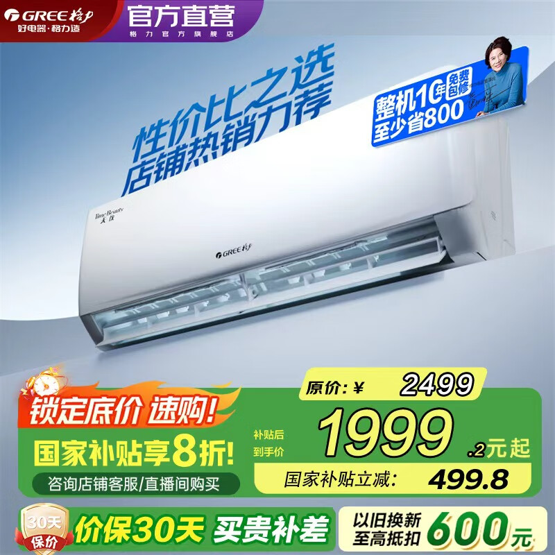 【品牌直营】格力空调大1匹/1.5匹天仪新一级能效变频冷暖自清洁卧室空调挂机家电国家补贴以旧换新1.
