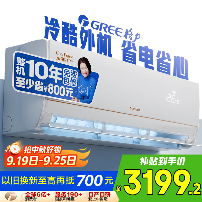 【京东自营】格力1.5匹AI节能王子Pro新1级变频卧室挂机Ai节能省电舒适风不吹人空调KFR-35